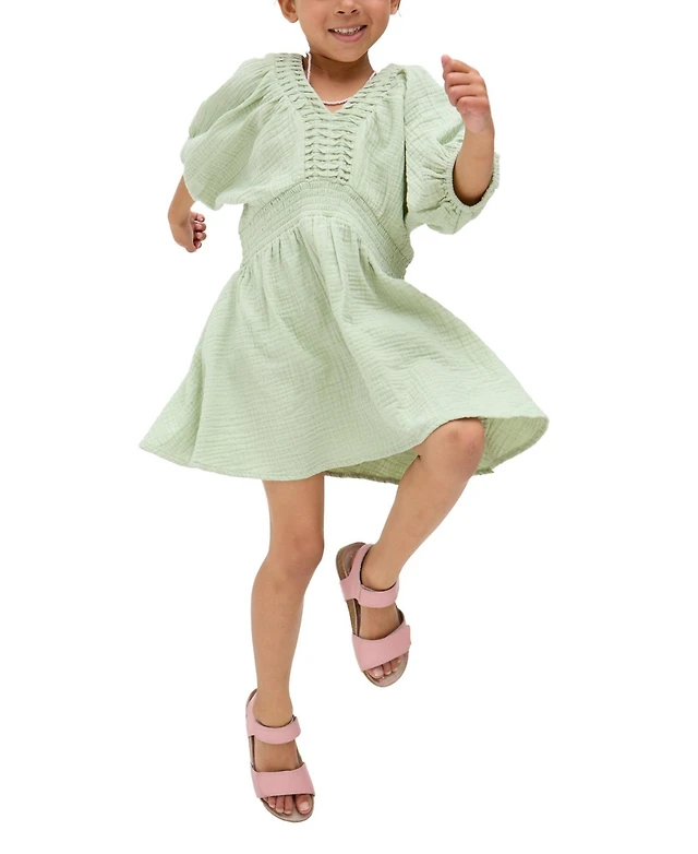 Raffya Kids Little Girls Soipoi Ruched V-Neck Dress