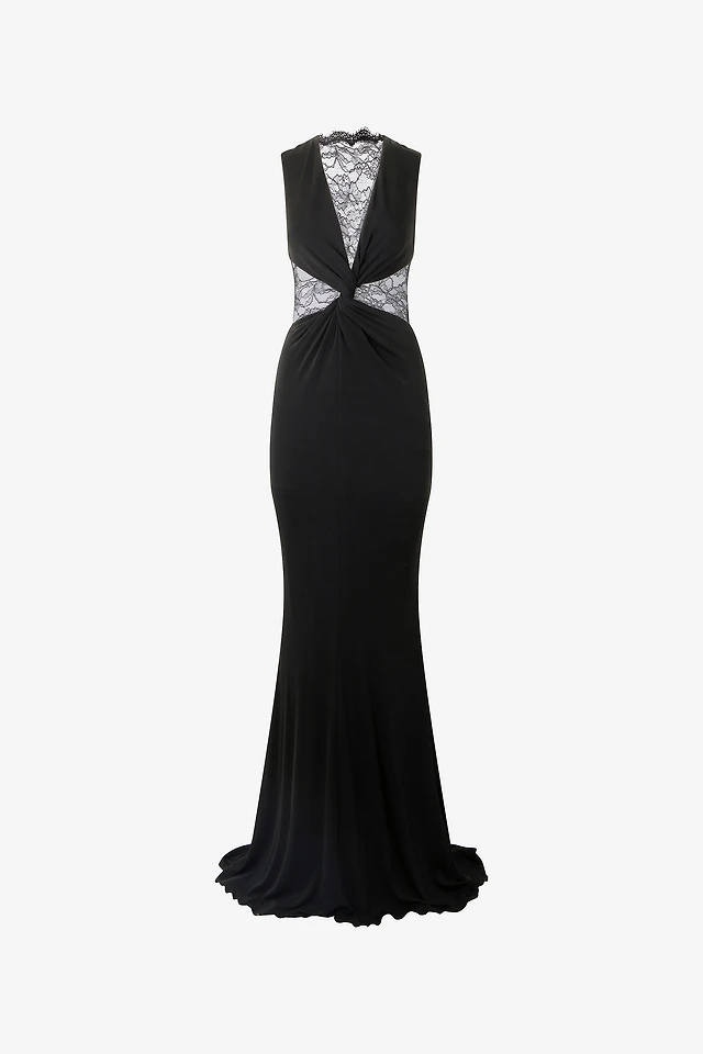 Raas Women's Black Velvet Mini Wrap Dress with Hand Embroidery