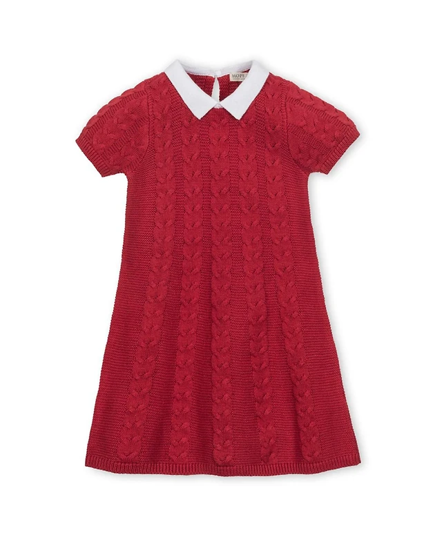 Hope & Henry Toddler Girls Organic Short Sleeve Cable Sweater Dress with Collar