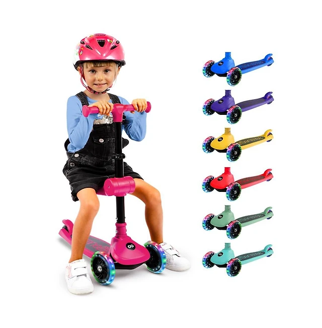 3 Wheel Scooter for Kids with Foldable Seat, Adjustable Handlebar Height, Lean-to-Steer Ride On Toy for Kids Ages 2+, Light-Up Led Wheels, Wide Anti S
