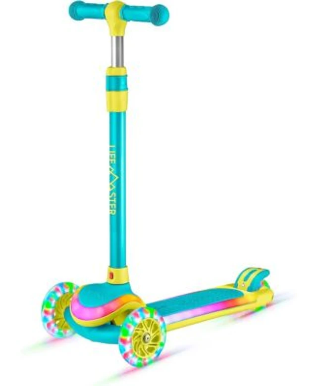 Lifemaster 3 Wheel Kids Scooter With Multi Color Lights On Deck Wheels 5 Height Handlebar Wide Anti Slip Deck Child Safety Certified Boys Girls Ages 3 Supports Up To 150 Lbs Aqua Yellow