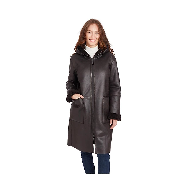 Julia & Stella by Maximilian Women's Reversible Shearling Lamb Teddy Coat