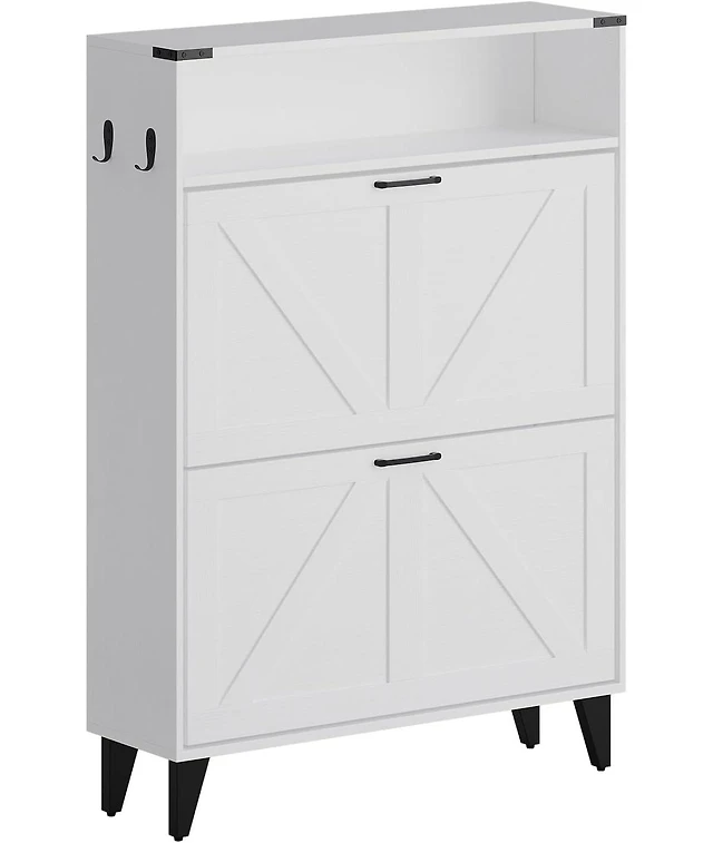 Aecojoy Shoe Storage Cabinet with 2 Flip Drawers - Hidden Organizer for Entryway, Metal Rack Door & Open