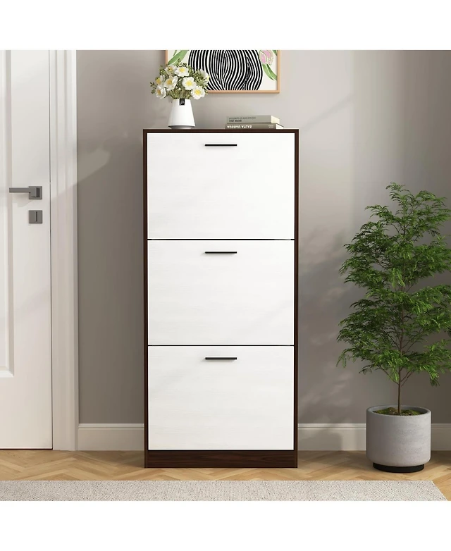 Slickblue Shoe Cabinet with 3 Flip Drawers, Freestanding Entryway Organizer for Boots and Heels