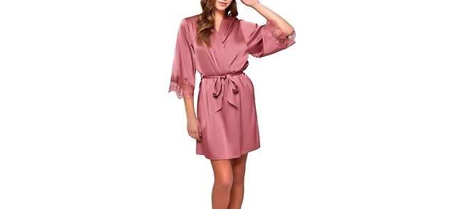 iCollection Women' s Chiya Robe with Self Tie Sash and Lace Trimed Hemlines