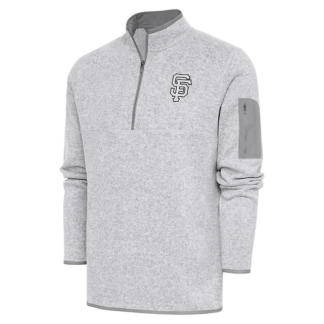 Men's Antigua Pewter San Francisco Giants Metallic Fortune Quarter-Zip Pullover Jacket
