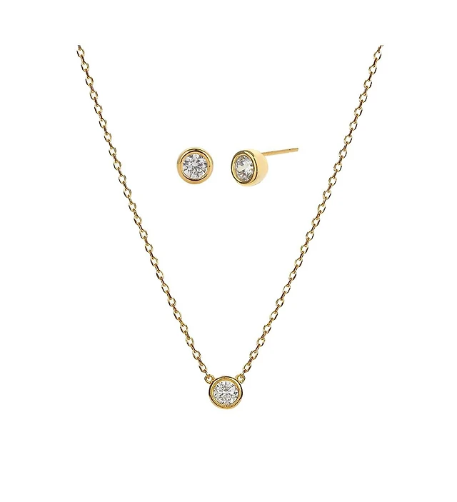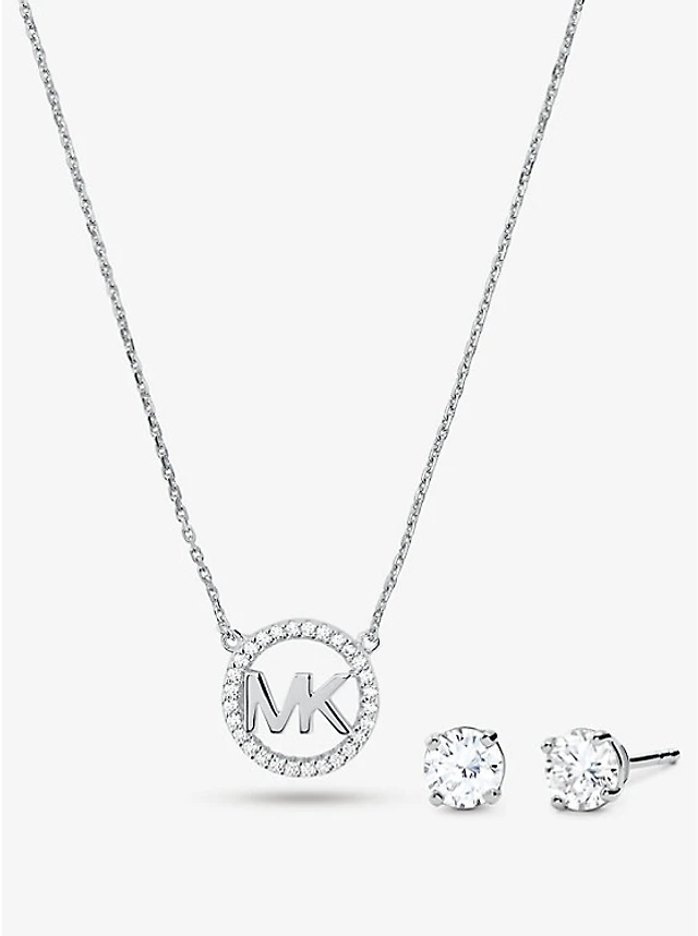 14K Rose Gold-Plated Sterling Silver Pavé Logo Charm Necklace and Stud Earrings Set
