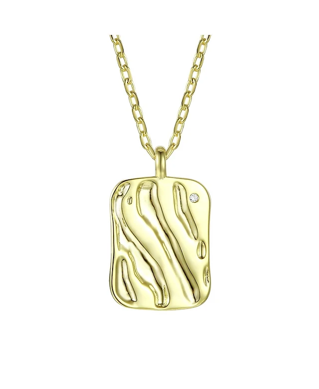 Rectangle-shaped 14k Gold-plated Chain With Round-brilliant stones Pendant Cubic Zirconia In Sterling Silver.