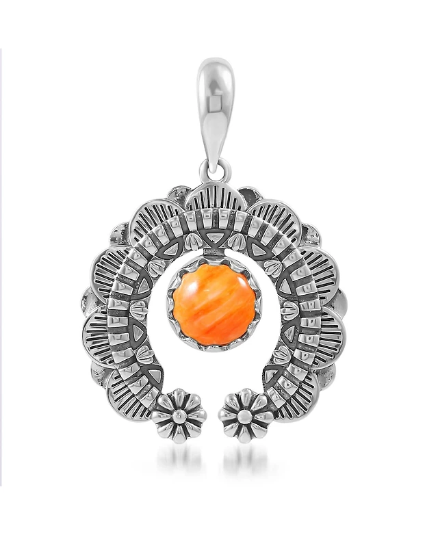 American West Jewelry Sterling Silver Orange Spiny Oyster Round Cut Naja Pendant Enhancer