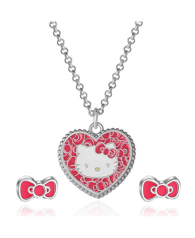 Peanuts Womens Snoopy and Woodstock Red Crystal Silver Plated Heart Necklace, 18''