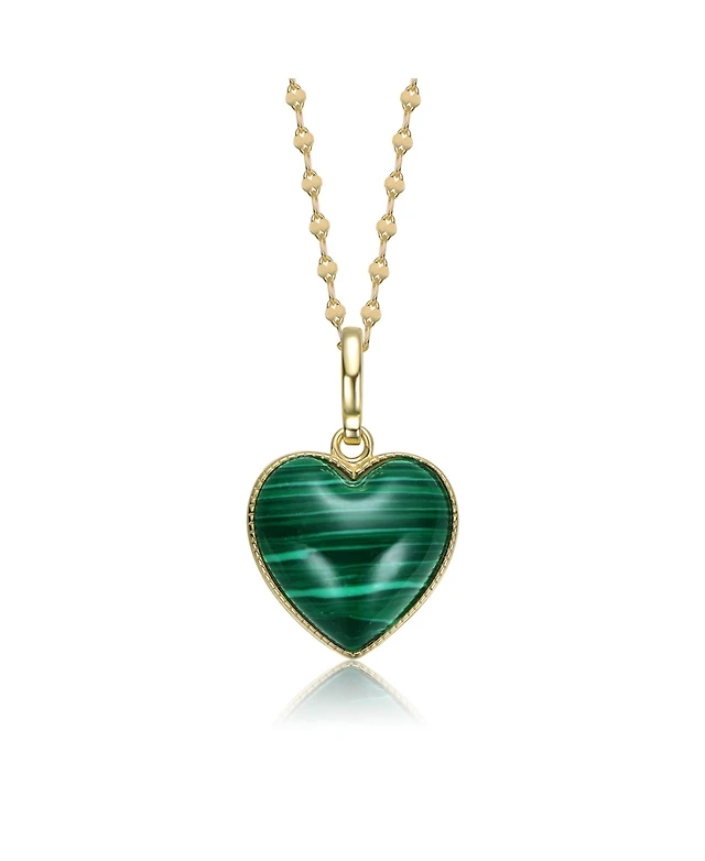 Gorgeous Sterling Silver 14K Gold Plated Green Heart Stone Pendant