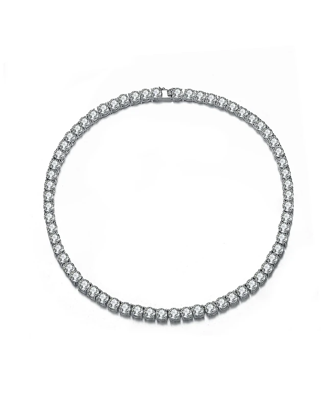 Sterling Silver with White Gold Plated Clear Round Cubic Zirconia Linear Pave Necklace