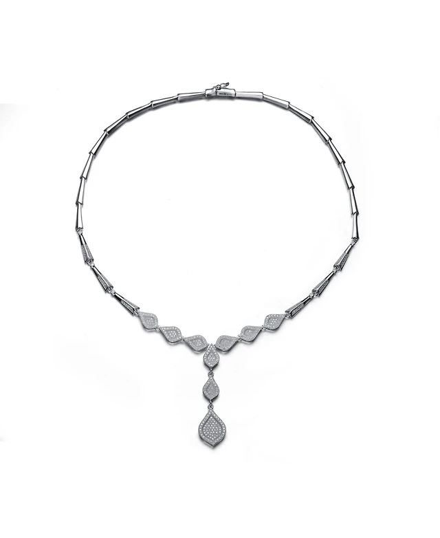 Sterling Silver White Gold Plated with Colored Cubic Zirconia Dangle Necklace