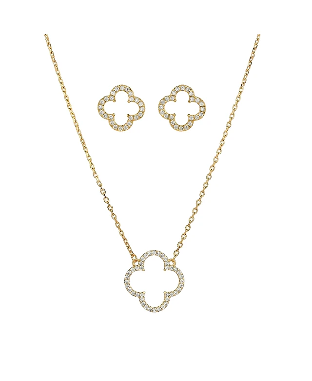 Bearfruit Jewelry Sterling Silver 18k Gold Plated Aria Clover Necklace & Stud Earrings Set