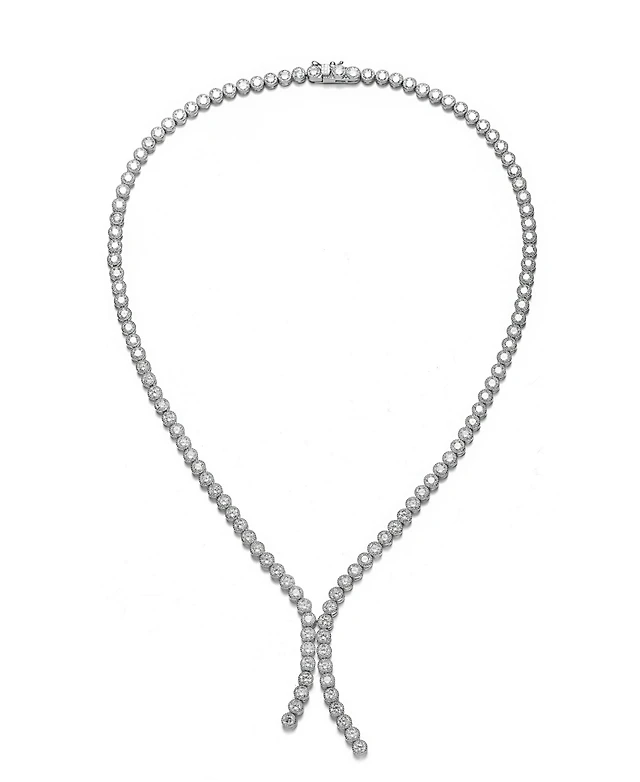 Sterling Silver White Gold Plated Cubic Zirconia Double Tennis Necklace