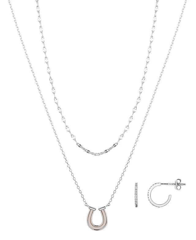 Unwritten Mother of Pearl Horseshoe Layered Necklace and Cubic Zirconia Hoop Earring Set