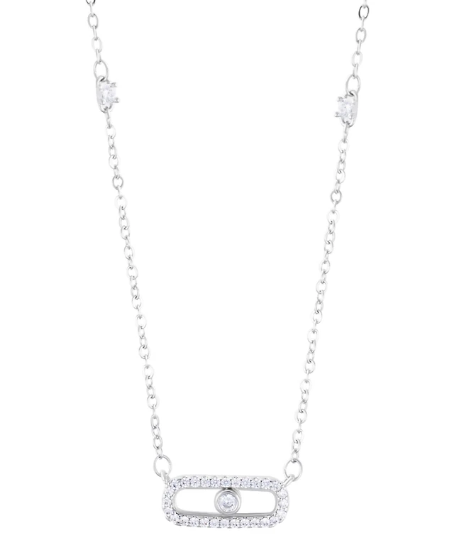 Genevive Sterling Silver White Gold Plated Clear Pear with Oval and Round Cubic Zirconia Accent Drop Necklace