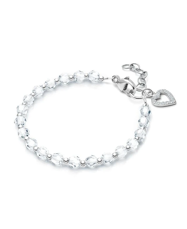 Children's Sterling Silver Signature White Crystal with Cross Girls' 5.25" Bracelet
