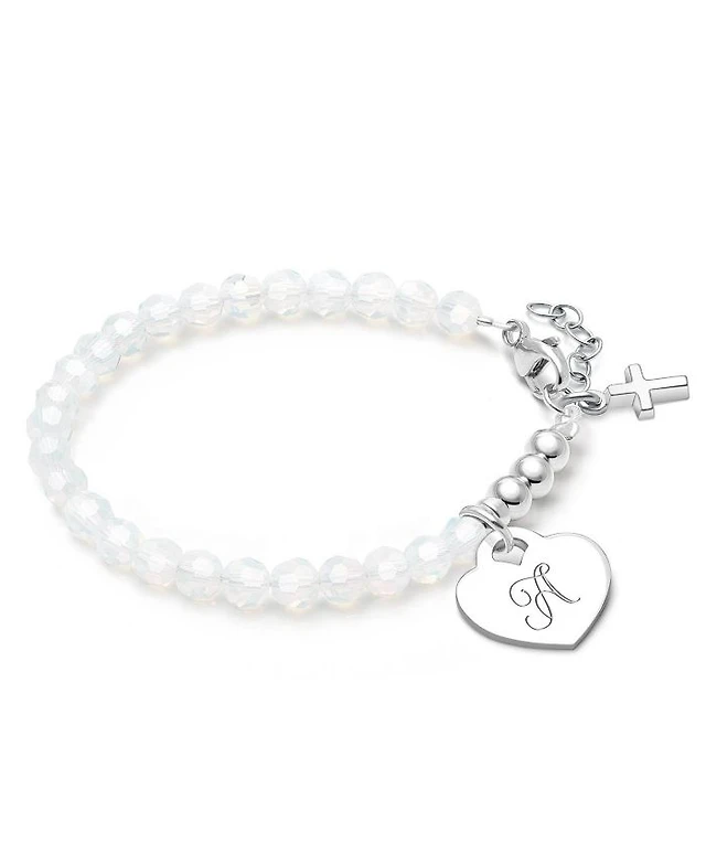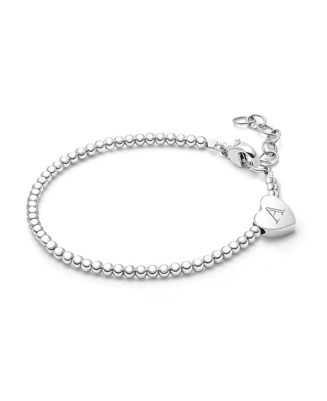 Girls' Sterling Silver 3mm Beads & Engraved Initial 5.25" Bracelet - Children