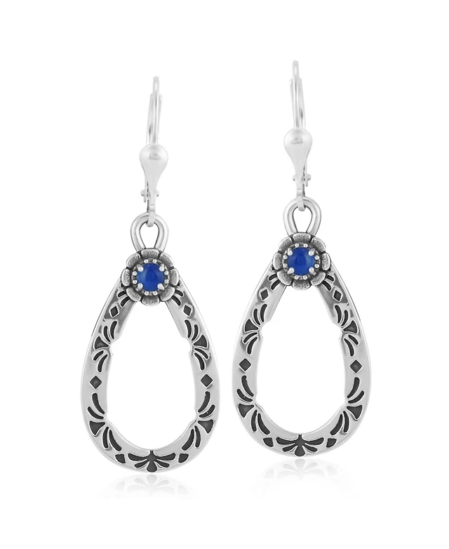 American West Jewelry Sterling Silver Lapis Lazuli Gemstone Pear Shaped Lever Back Earrings