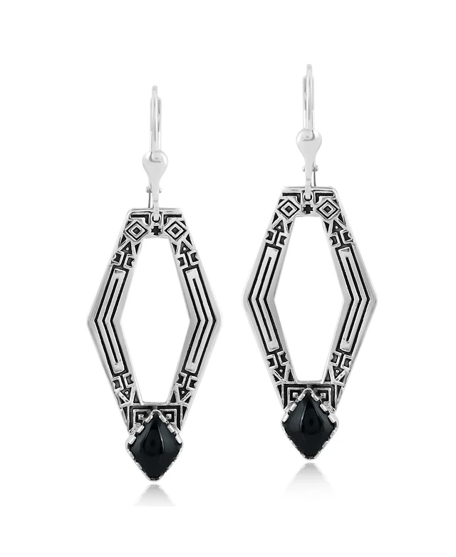 American West Jewelry Sterling Silver and Geometric Shape Black Agate Gemstone Lever Back Earrings