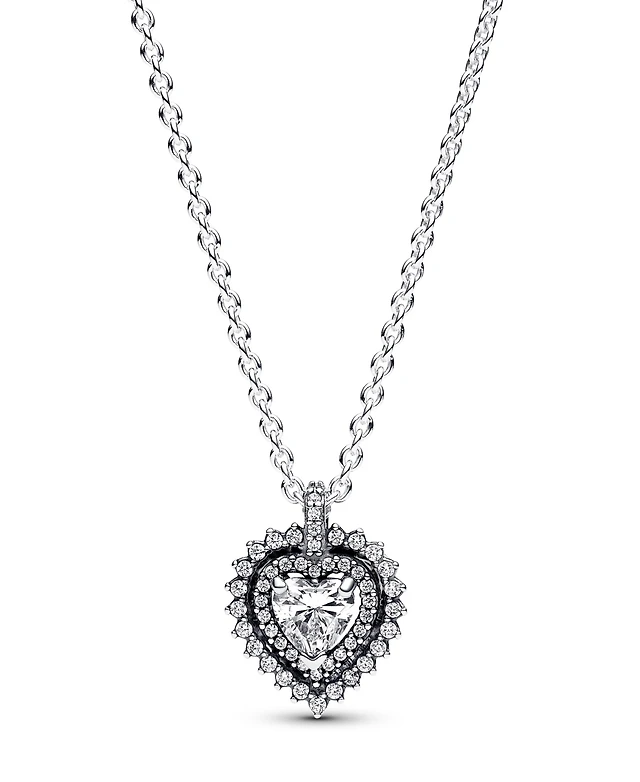 Pandora Sterling Silver with Clear Cubic Zirconia Heart Collier Necklace