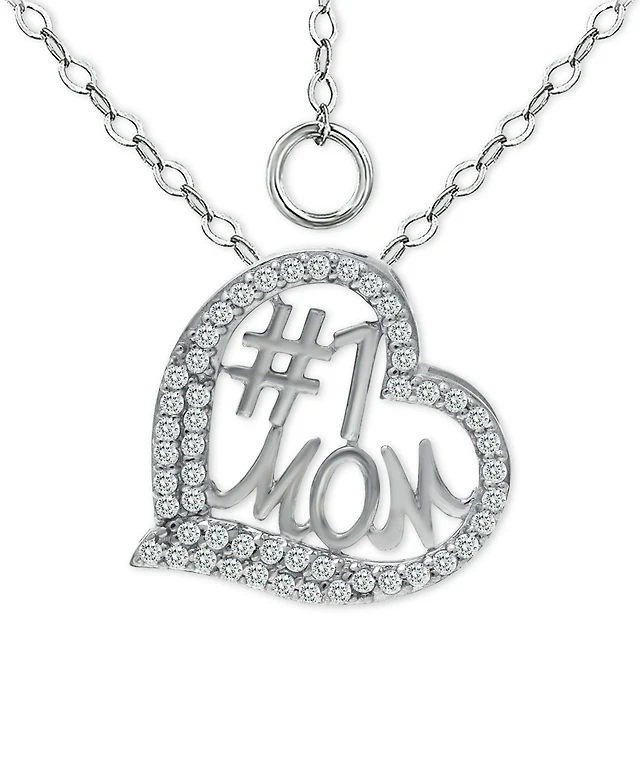 Cubic Zirconia Mom Heart Pendant 18" Necklace in Sterling Silver and 18k Rose Gold Over Sterling Silver