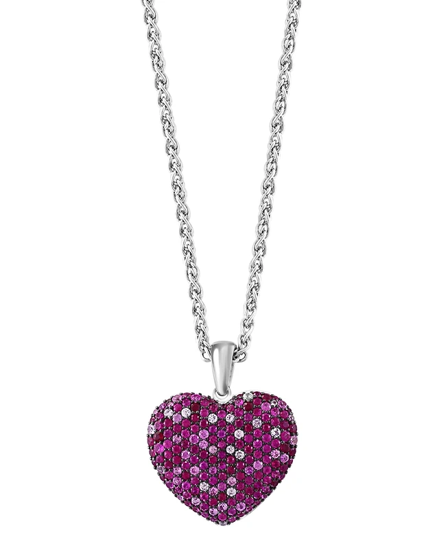 Lab-Created Ruby (13 ct. t.w.) & Lab Created White Sapphire (1-1/4 ct. t.w.) Heart 17" Pendant Necklace in Sterling Silver
