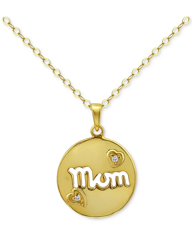Giani Bernini Cubic Zirconia Mom Heart Disc Pendant Necklace in 18k Gold-Plated Sterling Silver, 16" + 2" extender, Created for Macy's