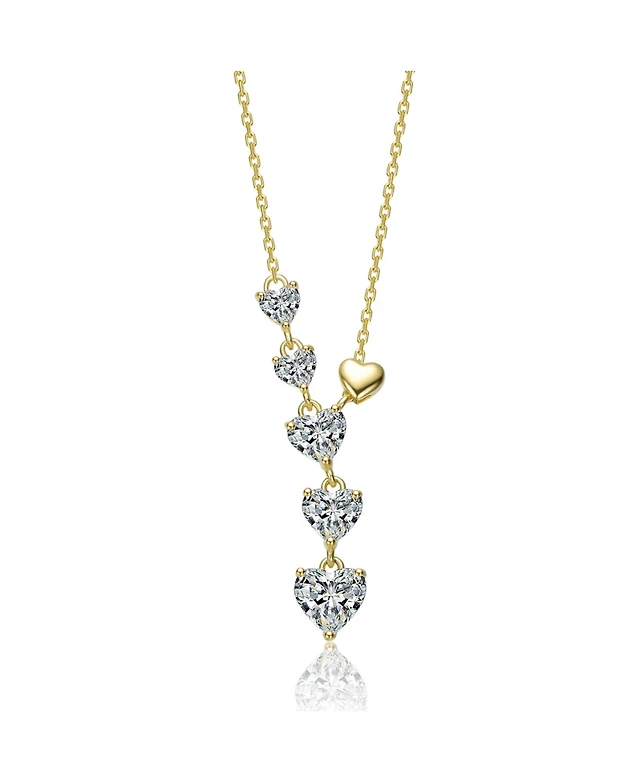 Sterling Silver 14k Yellow Gold Plated with Cubic Zirconia Pave Double Dangle Heart Charm Pendant Layering Necklace