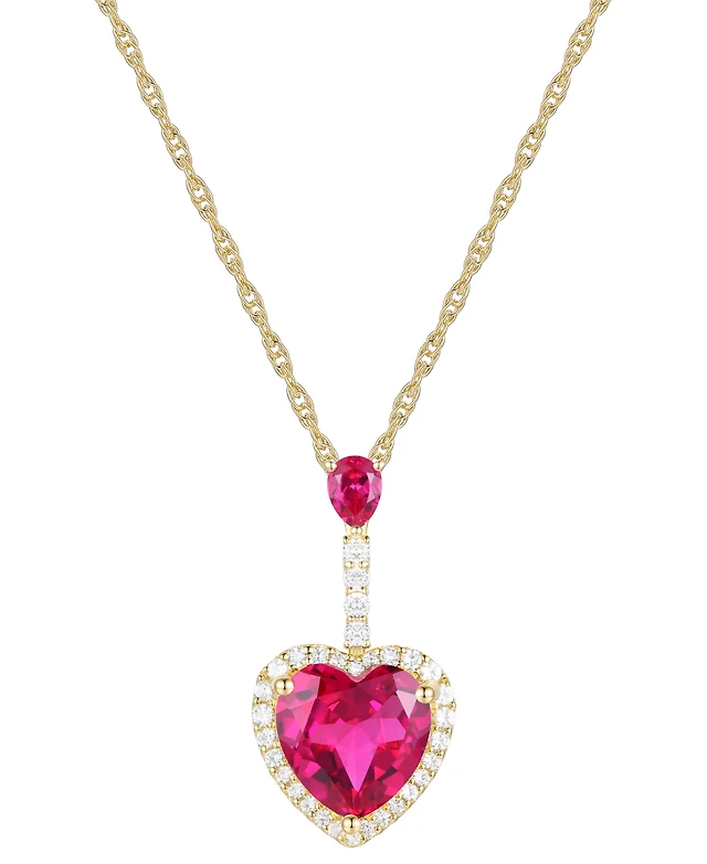 Lab-Grown Ruby (1/4 ct. t.w.) & Lab-Grown White Sapphire (1/4 ct. t.w.) Heart Pendant Necklace in 14k Gold-Plated Sterling Silver, 16" + 2" extender