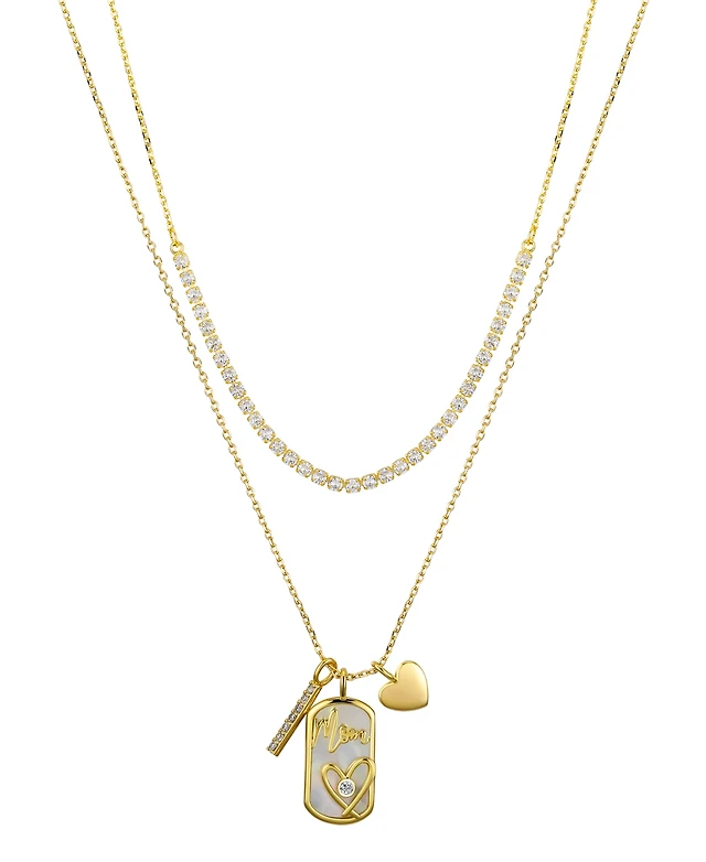 Unwritten Cubic Zirconia Mom and Heart Pendant Layered Necklace Set