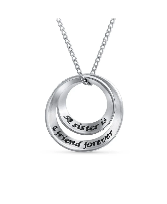Bling Jewelry Word Inspirational Quote Sayings Circle Sisters Friends Pendant Necklace Rose Gold Plated .925 Sterling Silver