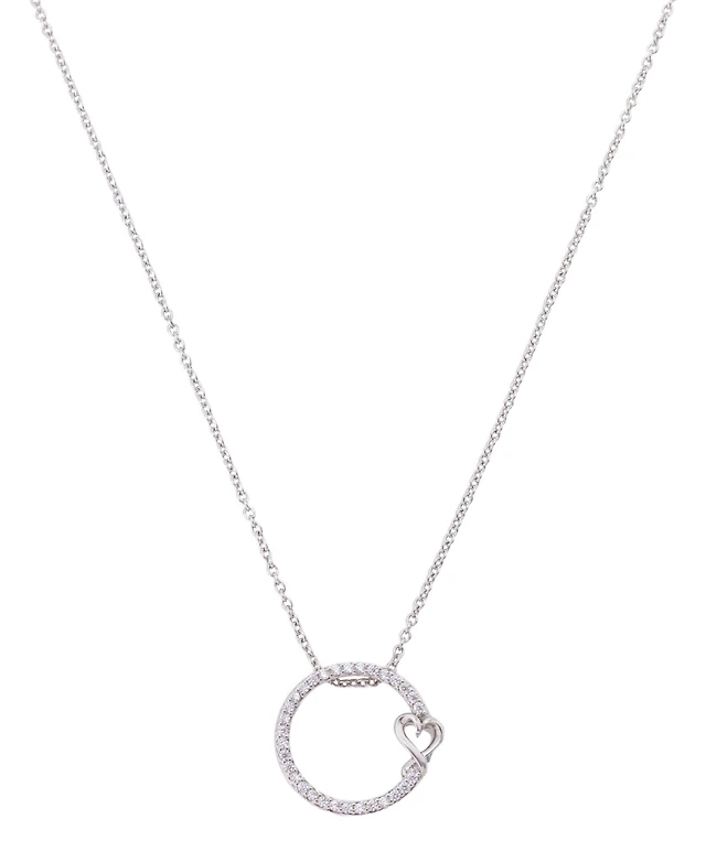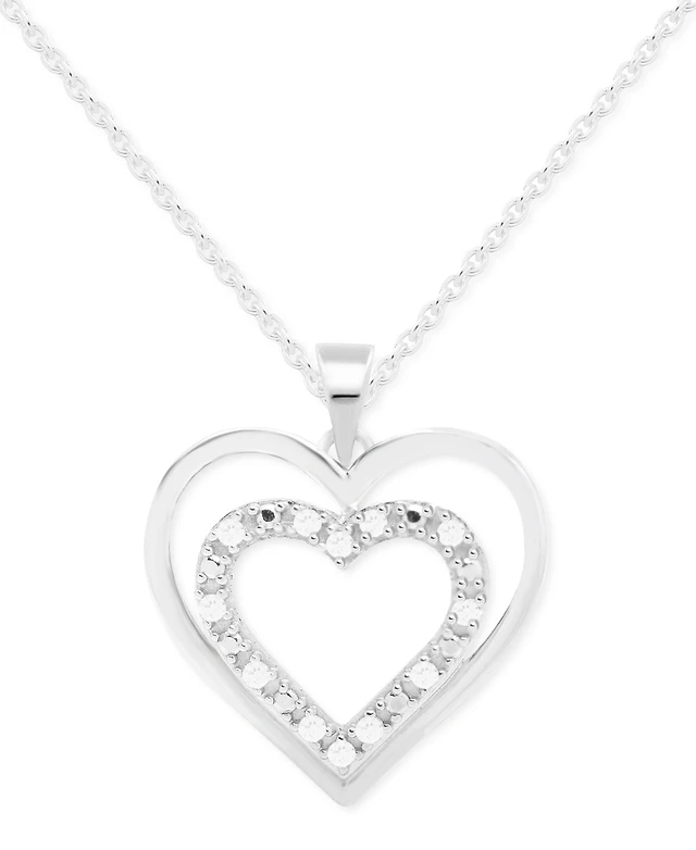 Macy's Diamond Accent Silver-plated Cross in Heart Pendant Necklace