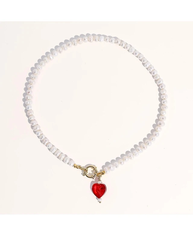 2028 Imitation Pearl Resin Heart Shaped Cameo Necklace