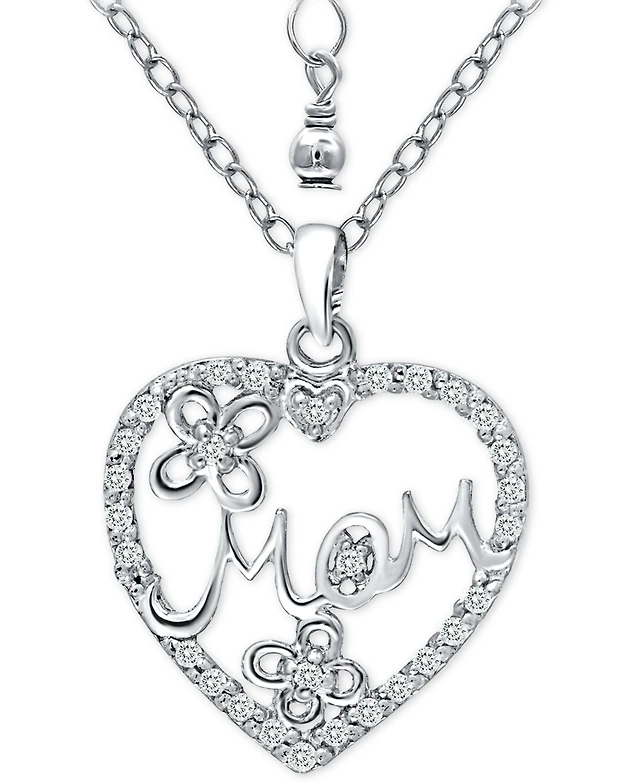 Macy's Women's Diamond Accent 'Mom' Heart Pendant Necklace