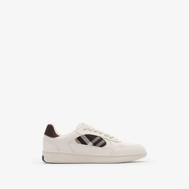 Leather and Check Terrace Sneakers in Cotton beige/mahogany brown - Men | Burberry® Official