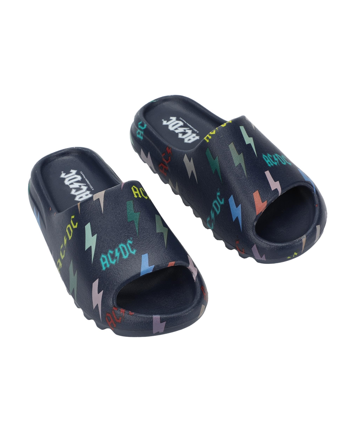 Ac/Dc Men's Acdc Rainbow Thunderbolt Logos Blue Slide Sandals-Large