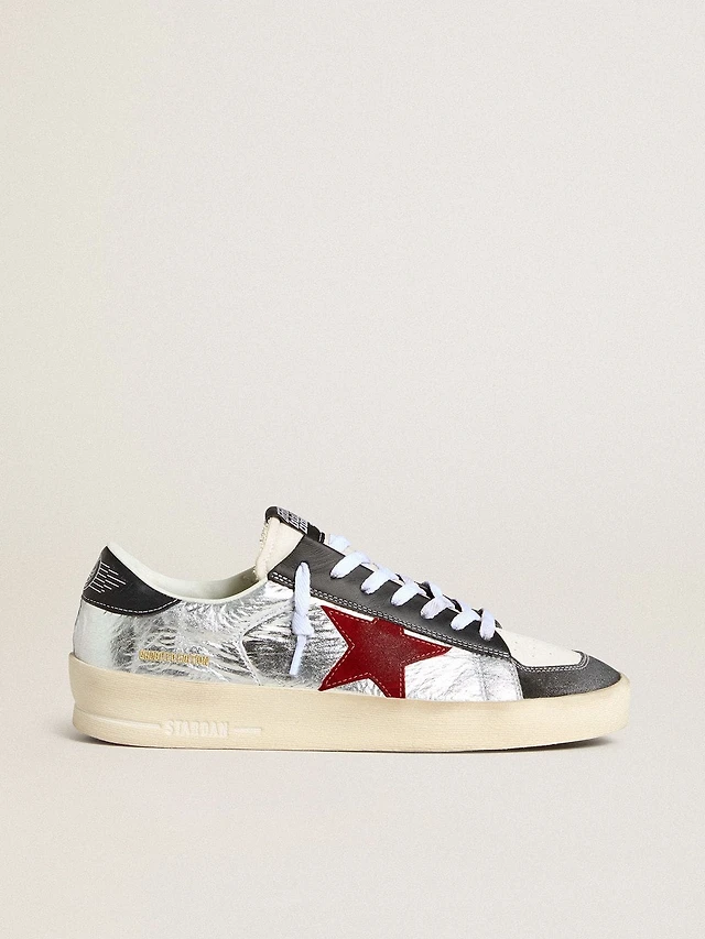 Men’s Stardan laminated silver nylon with burgundy suede star