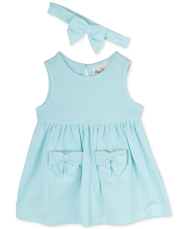 Rare Editions Baby Girls Tank Dress with Pockets & Headband, 2 Piece Set
