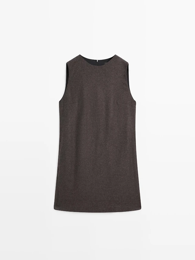V-neck dress with zipped pockets and cropped sleeves