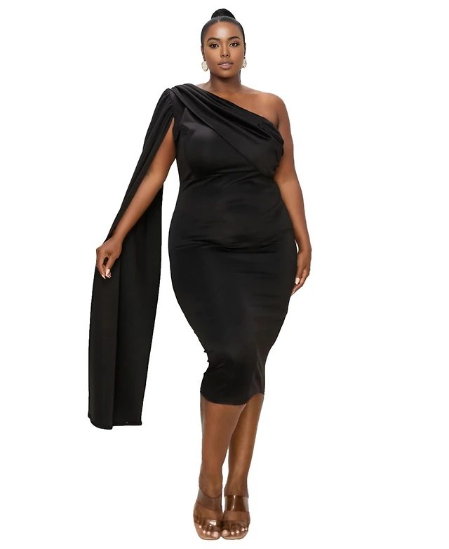 Eloquii Women's Plus Ruched One Shoulder Dress