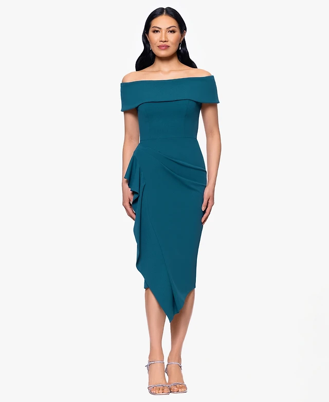 Xscape Women's Velvet Off Shoulder Neck Dress
