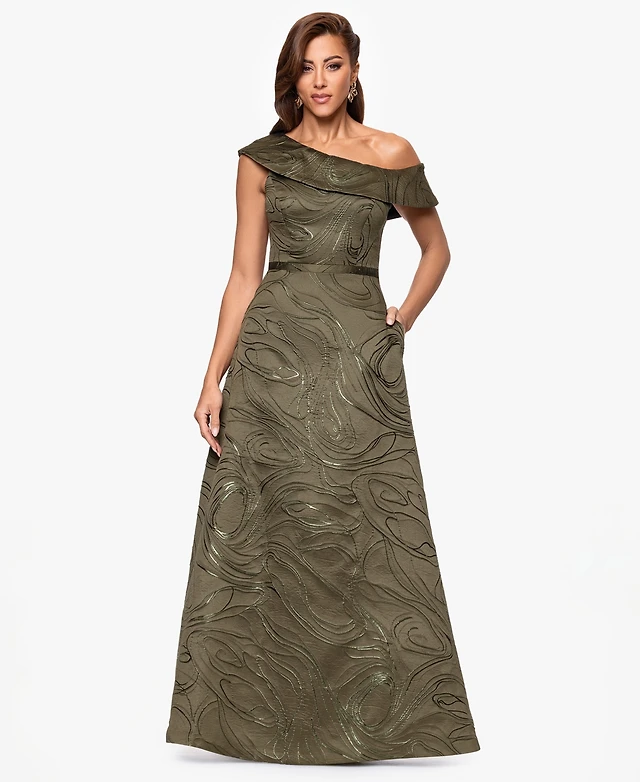 Xscape Women's Jacquard One-Shoulder Long Dress