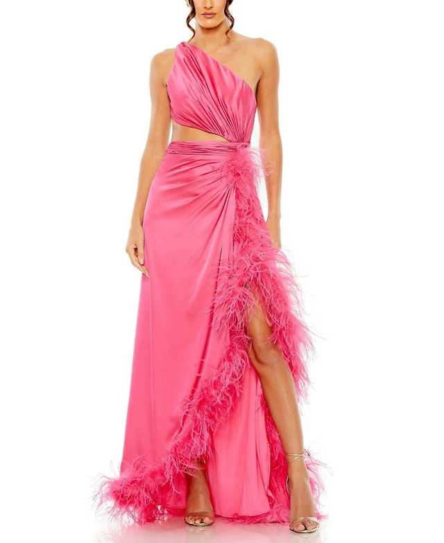One Shoulder Key Hold Detail with Feather Lining Dress