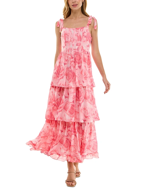 julia jordan Women's Sleeveless Tie-Shoulder-Strap Tiered Maxi Dress