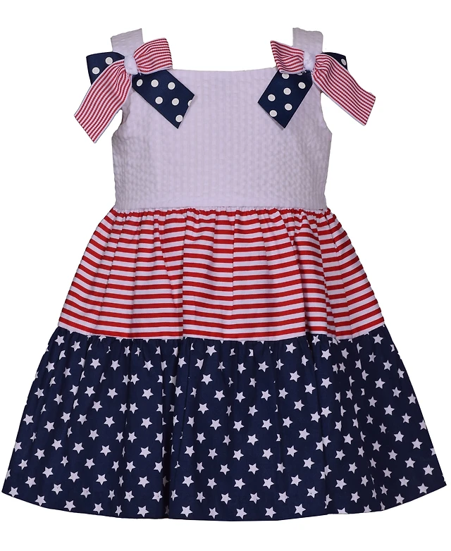 Bonnie Baby Baby Girls Americana Mixed Print Bow Shoulder Dress