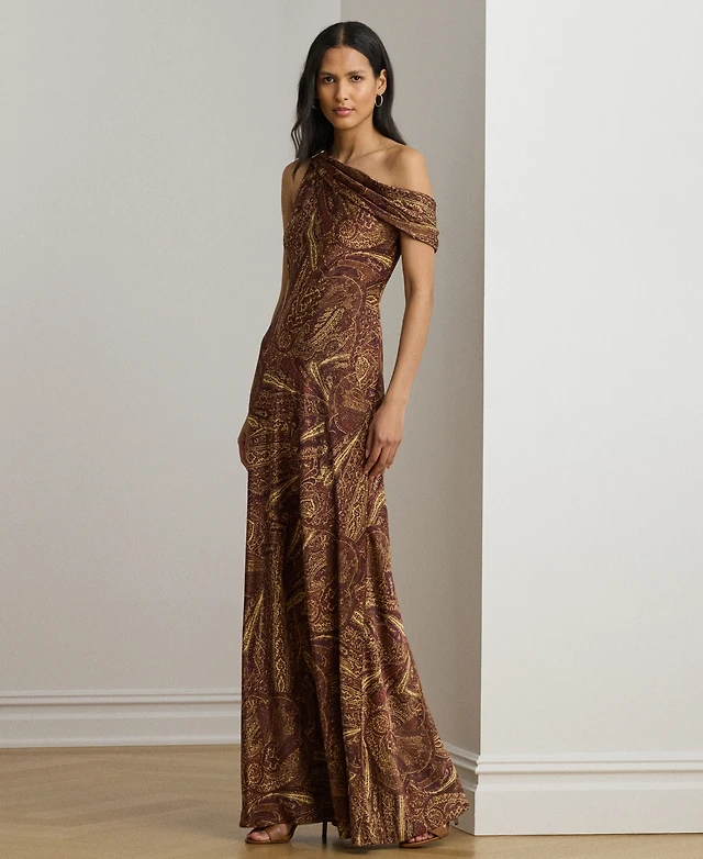 Amri Women's Ruched Drape Off-The-Shoulder Wrap Over Gown