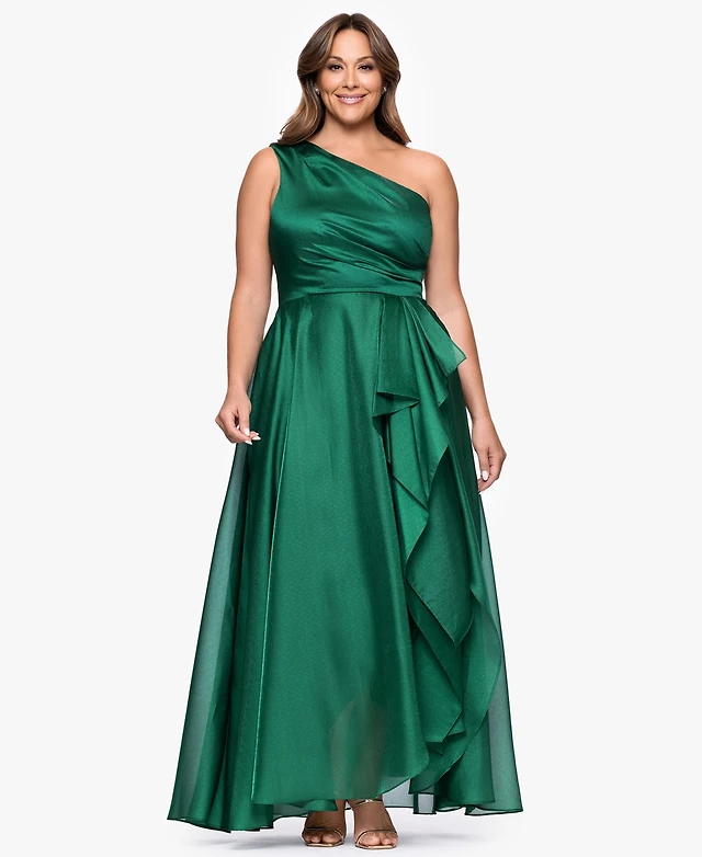 Xscape Plus-Size One-Shoulder Sash Gown
