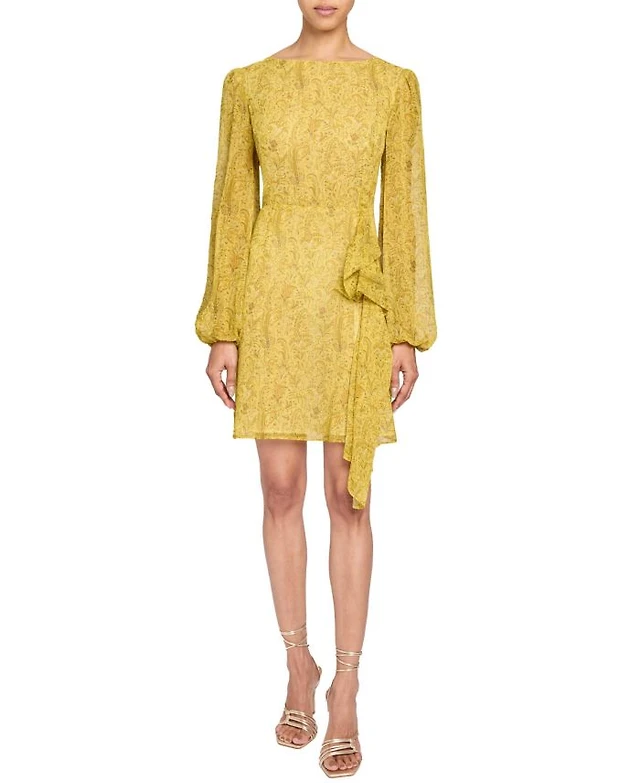Lara Women's Long Sleeve V-Neck, Layered Skirt Print Dress